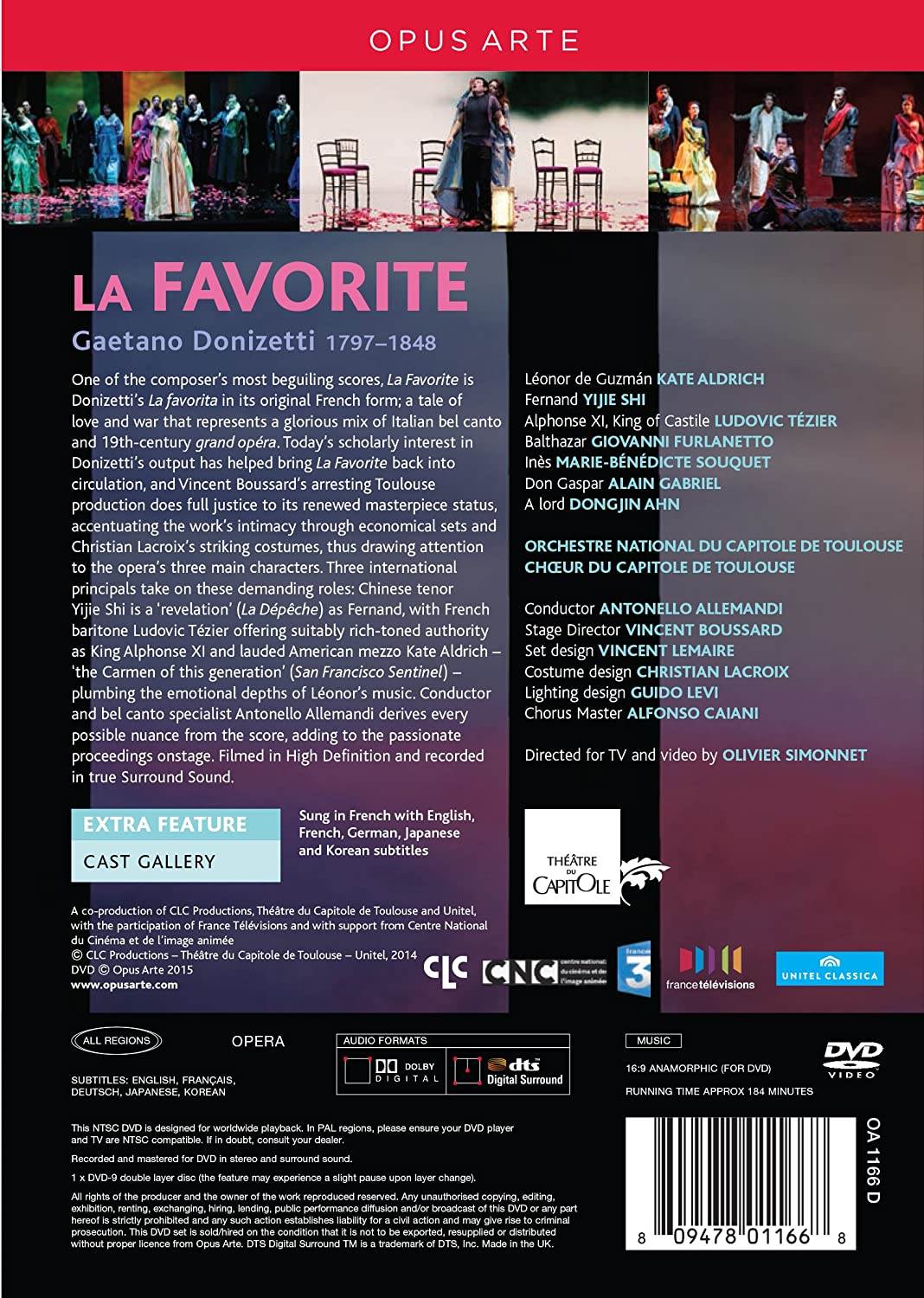 DONIZETTI:LA FAVORITE/ALDRICH/SHI/TEZIER/BOUSSARD iz kategorije dvd sodi med odlične Nosilci zvoka in slike.