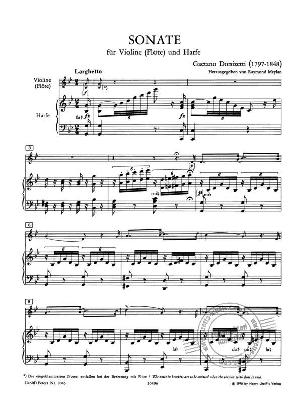 DONIZETTI:SONATE VIOLINE (FLUTE) UND HARFE iz kategorije skladbe sodi med odlične violina.