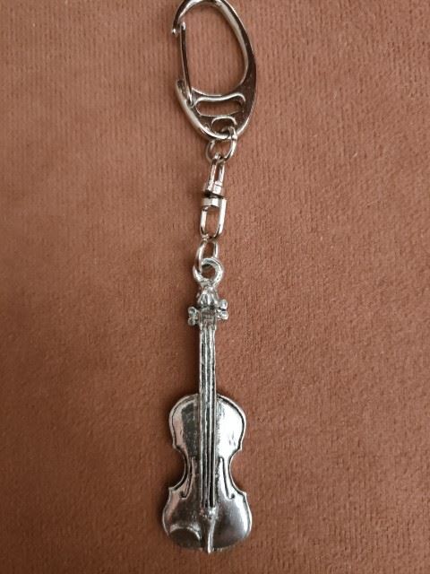 Ročno izdelan obesek za ključe iz kositra v violinskem dizajnu.10 x 1,5 cm