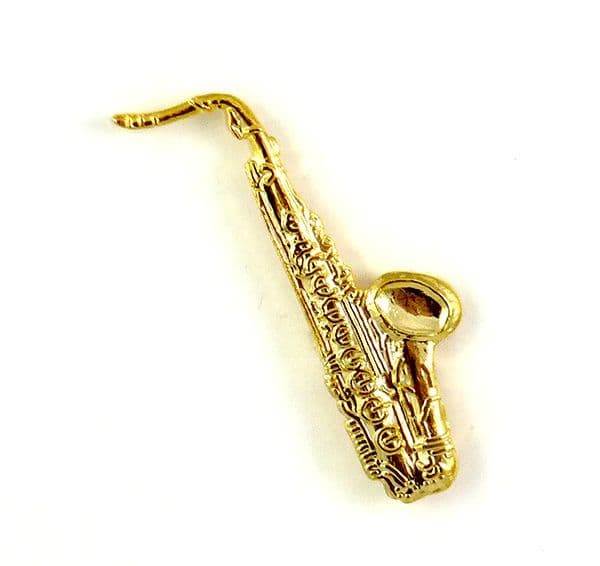 Privlačna kovinska priponka z zlatim zaključkom v obliki alt saksofona. 3,5 cm.