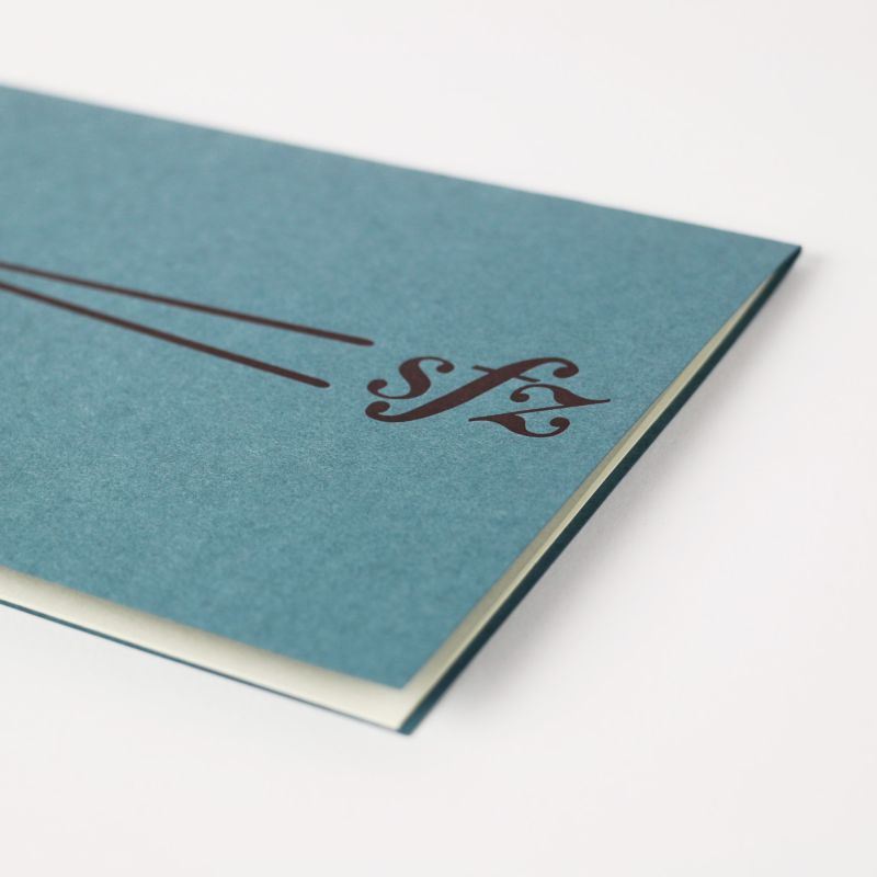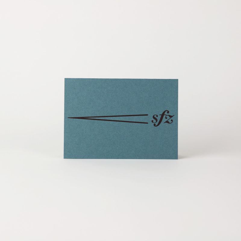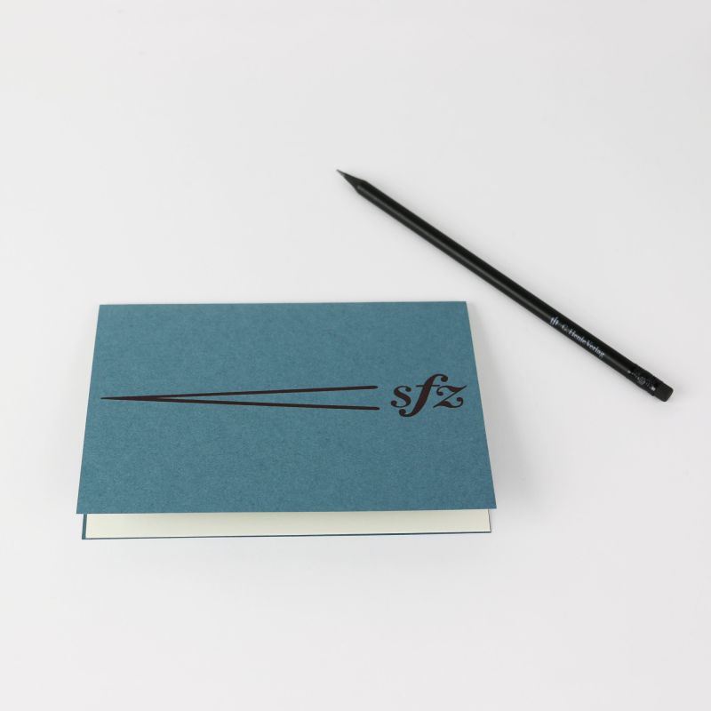 Voščilnica iz originalnega Henlejevega modrega platna, z barvno vtisnjenim motivom »Dynamik markings« in belim, pisljivim papirjem, formata C6. Vključuje kuverto, formata B6.