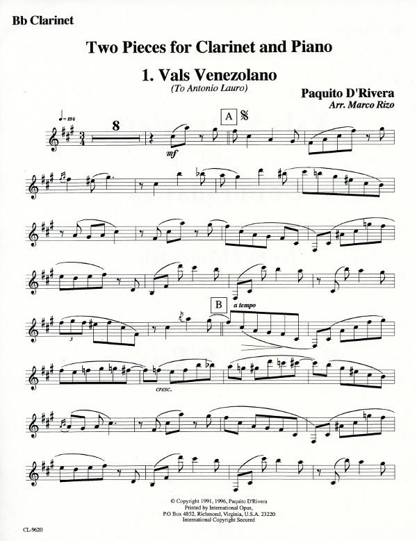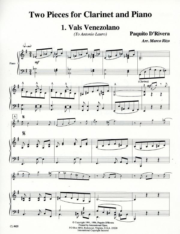 D'RIVERA:VALS VENEZOLANO AND CONTRADANZA CLARINET AND PIANO iz kategorije skladbe sodi med odlične klarinet.