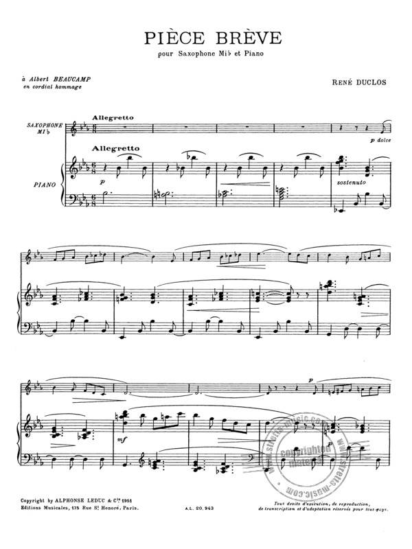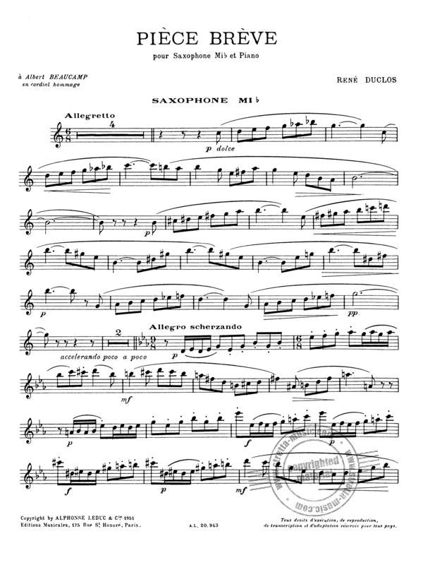 DUCLOS R.:PIECE BREVE POUR SAX iz kategorije skladbe sodi med odlične saksofon.