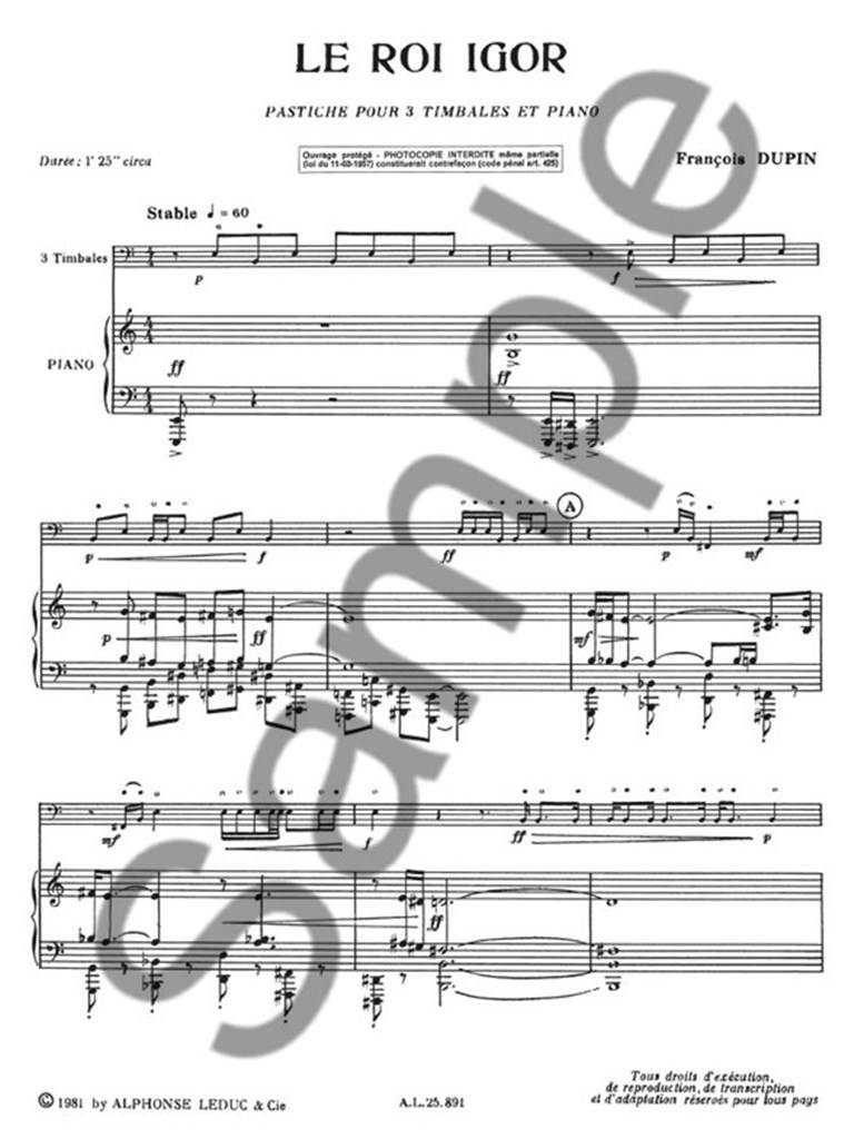 DUPIN:LE ROI IGOR 3 TIMBALES AND PIANO iz kategorije skladbe sodi med odlične tolkala.