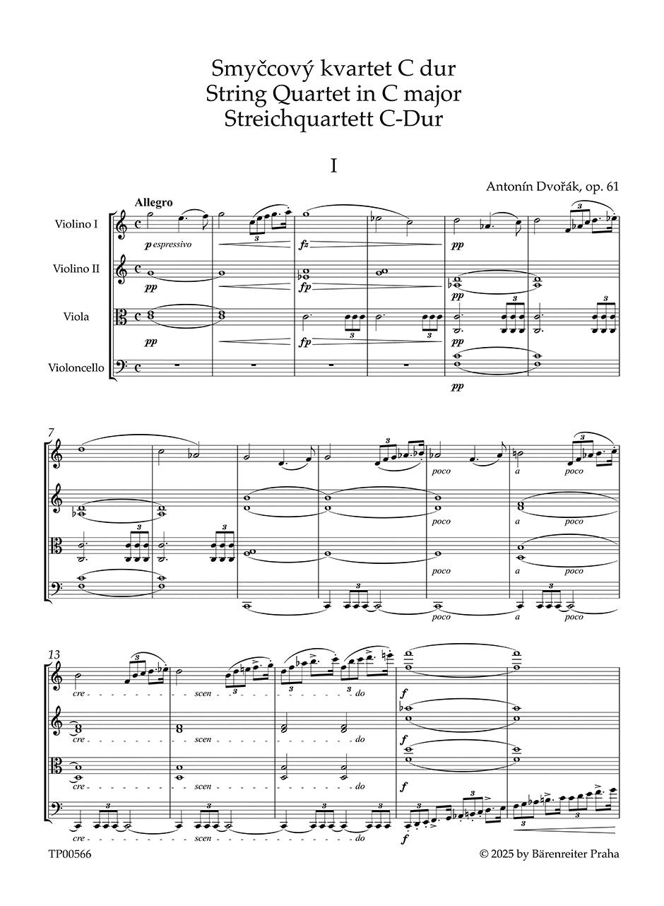 DVORAK:STRING QUARTET NO.11 C-DUR STUDY SCORE iz kategorije partiture sodi med odlične Notna literatura.