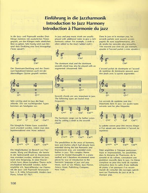 Avtor se je zato osredotočil na izbiro skladb iz velikega bogastva klavirskega repertoarja in njihovo razvrščanje po posebnih strukturnih merilih. S tem pristopom se tehnični vidiki (igranje akorda, tretjine, šestine in drugi intervali) povezujejo z glasbenimi temami (izrazni dotik, razširjanje ritmičnega zavedanja, igranje s pedalom). Ti razvojni procesi bi se morali medsebojno zadoščati: pri tehničnih postopkih po eni strani nadzor nad kakovostjo tona, jasnostjo in artikulacijo ne bi smel omajati; komadi iz klavirskega repertoarja pa naj bi ustvarjalno moč pridobivali z vedno večjimi tehničnimi veščinami.