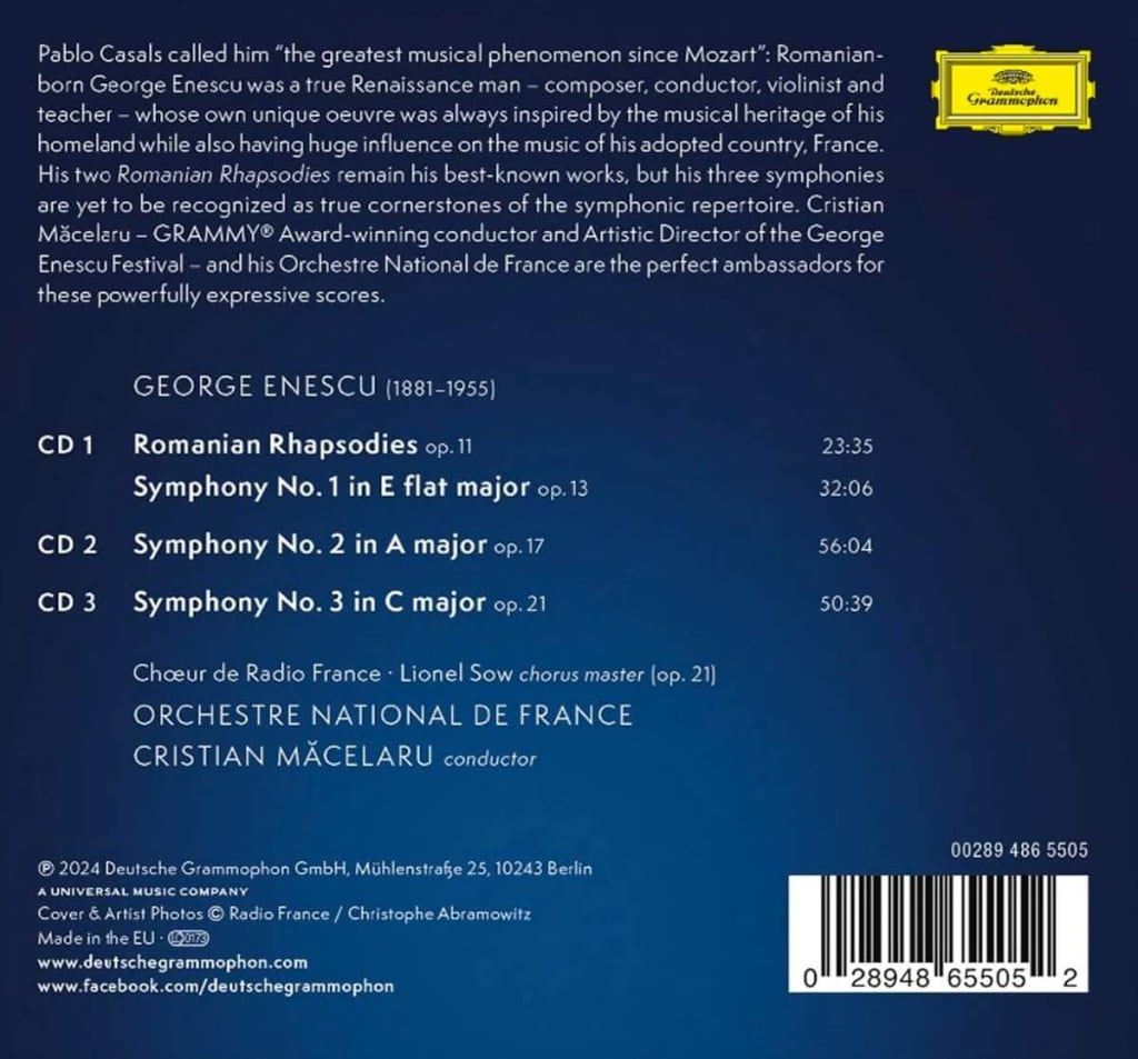 ENESCU:SYMPHONIES 1-3/MACELARU 3CD iz kategorije klasika in slovenska narodna sodi med odlične cd.