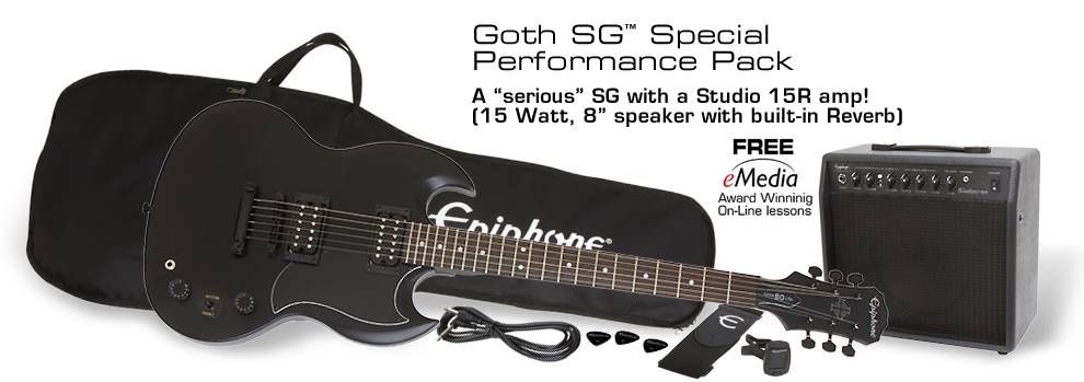 EPIPHONE ELEKTRIČNA KITARA GOTH SG SPECIAL PERFORMANCE PACK iz kategorije SG kitare sodi med odlične Električne kitare.