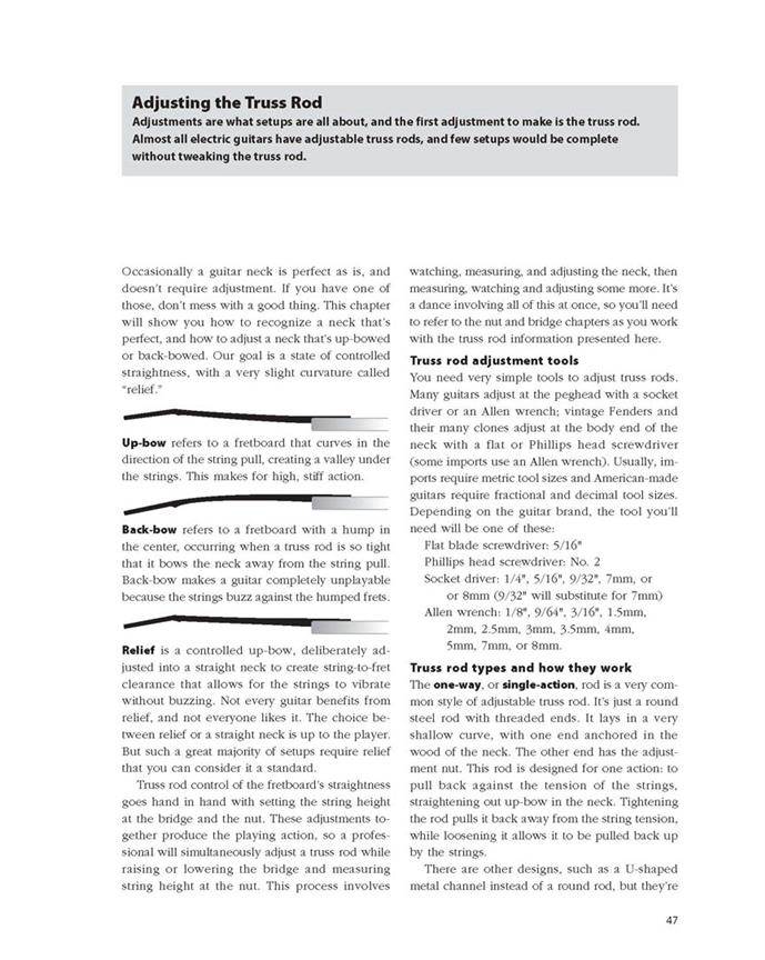 Od nakupa prve električne kitare do nastavitve po meri, ta naredi sam za lastništvo in vzdrževanje električne kitare razlaga podrobnosti izbire prave kitare, čiščenja, orodij in osnovnega vzdrževanja, personalizacije in izboljšanja tovarniške nastavitve, odpravljanje težav, osnovna kitarska elektronika, izbira in namestitev nadomestnih pickupov, loncev, stikal in kondenzatorjev, nastavitve profesionalcev in še veliko več. Ta nova izdaja je prenovljena od zgoraj navzdol in reorganizirana, da bralcu olajša zvok in odlično igranje električne kitare. Ta izdaja zajema tudi bas kitare in vključuje spletni video, kjer vam Dan pokaže, kako enostavno je nastaviti svojo kitaro, opremljeno s Stratom, Les Paulom, basom ali Floydom Roseom, tako da igra skladno in se počuti odlično. Vključuje tudi rezalno orodno ploščo s specializiranimi kitarskimi merilniki na zadnji strani knjige!