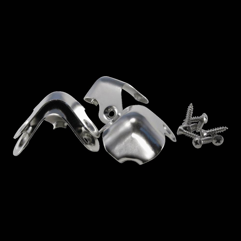 Set of 4, 2-screw mount, with lip. Install on amplifiers with solid backs. Nickel plated steel corner is designed for 3/4" wood cabinets where panel must be removed. Each corner comes complete with two 8 x 3/4" phillips head wood mounting screws.