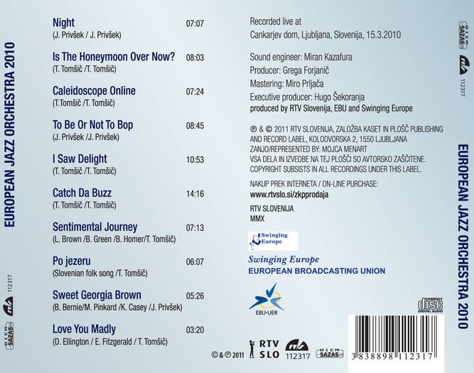 EUROPEAN JAZZ ORCHESTRA 2010/TADEJ TOMŠIČ iz kategorije zabavna in etno glasba sodi med odlične cd.