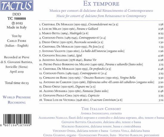 EX TEMPORE/MUSICA PER CONSORT DI DULCIANE DAL RINASCIMENTO