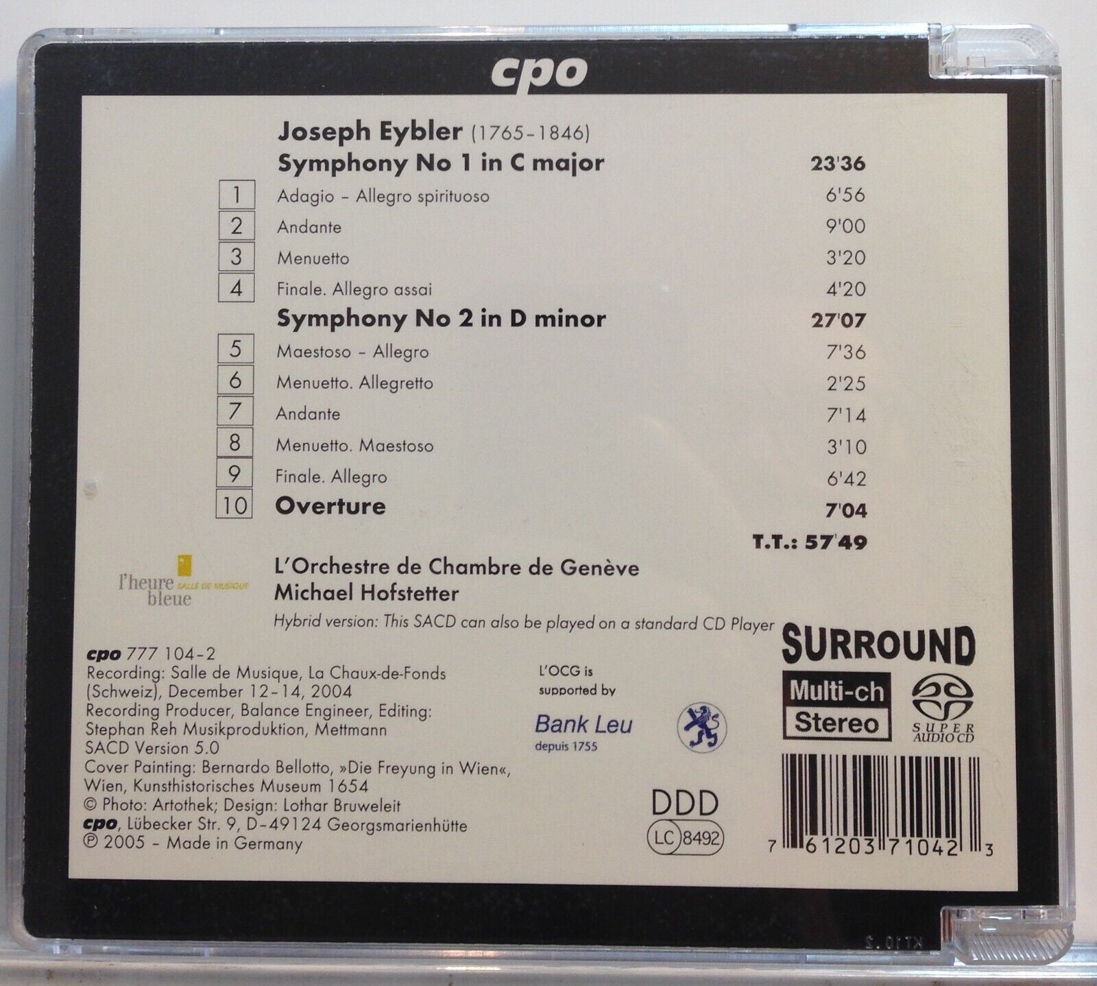 EYBLER:SYMPHONIES 1 & 2/OVERTURE iz kategorije klasika in slovenska narodna sodi med odlične cd.