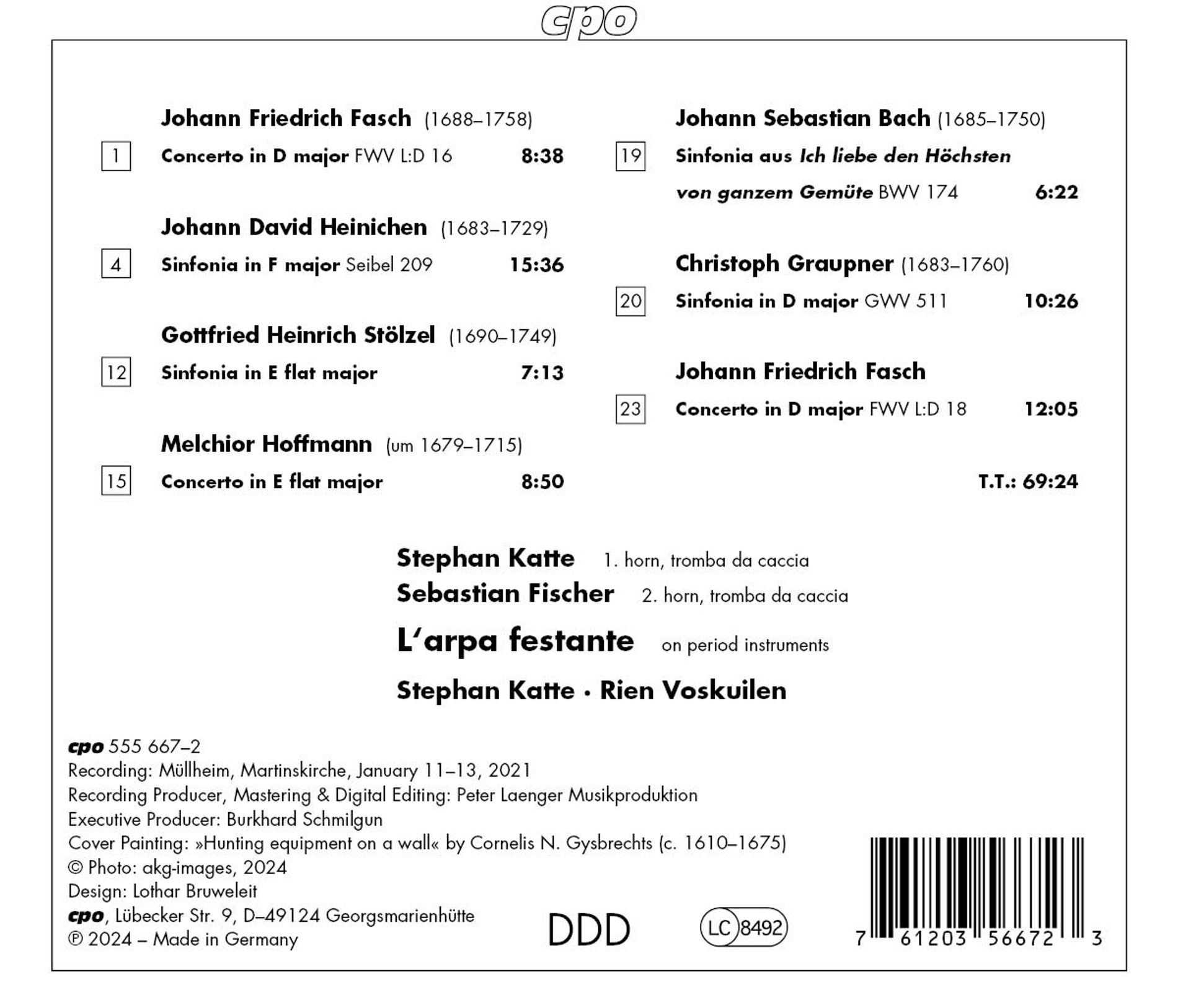 FASCH-HEINICHEN-STOLZEL-HOFFMANN-BACH-GRAUPNER:HORN CONCERTOS iz kategorije klasika in slovenska narodna sodi med odlične cd.