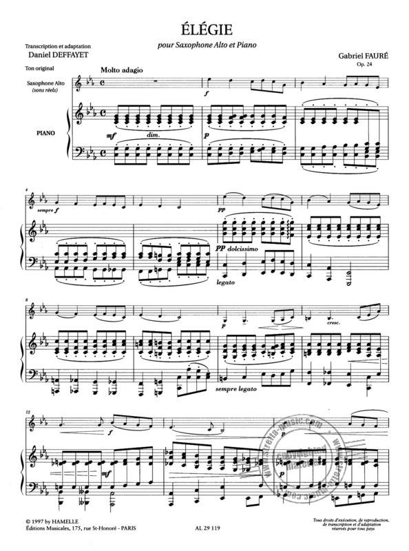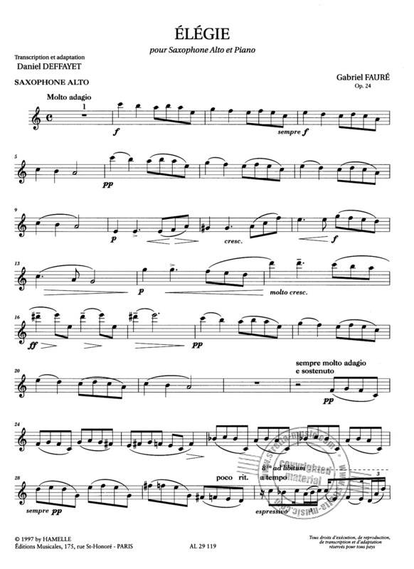 FAURE/DEFFAYET:ELEGIE OP.24 SAXOPHONE ALTO & PIANO iz kategorije skladbe sodi med odlične saksofon.