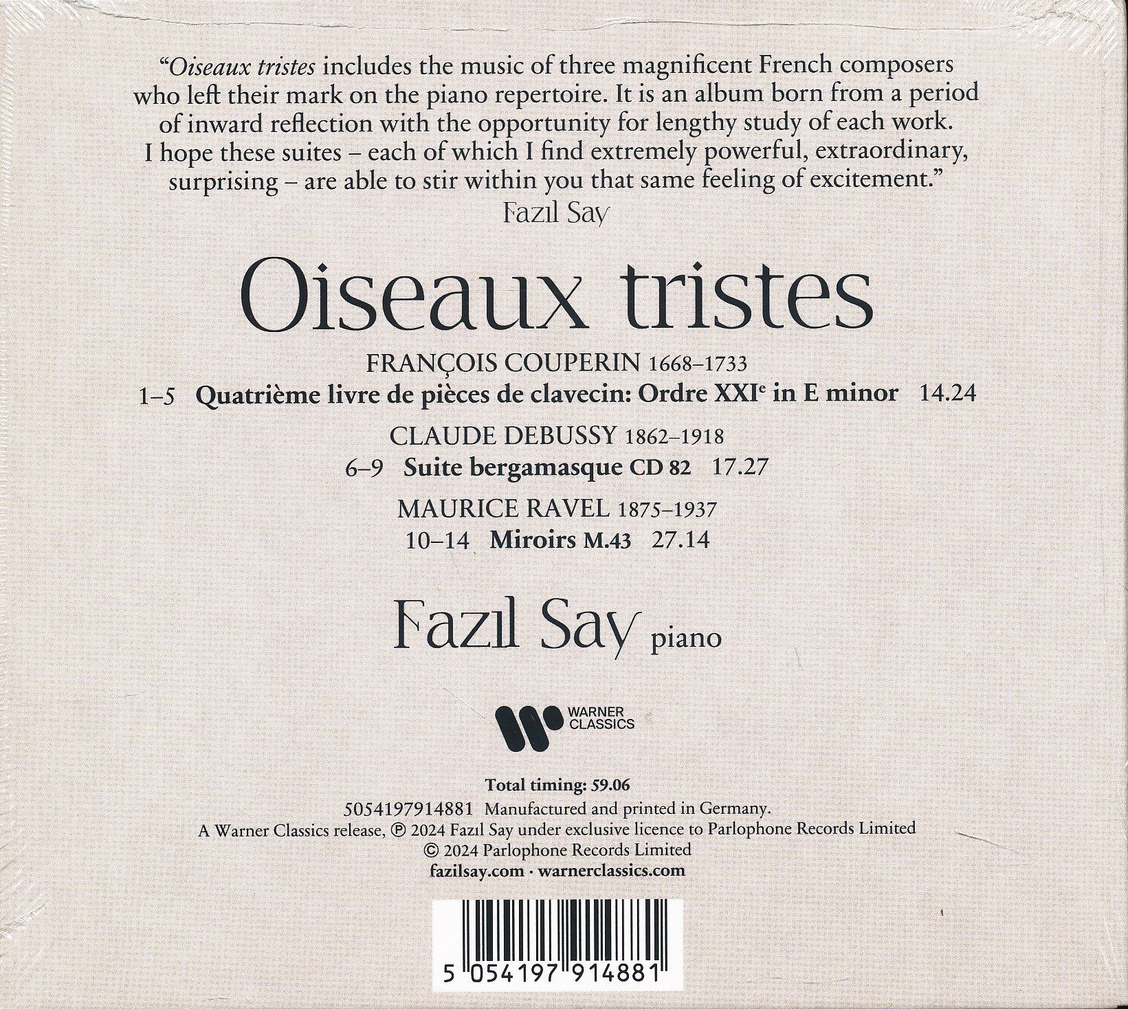 FAZIL SAY/OISEAUX TRISTES/COUPERIN-DEBUSSY-RAVEL