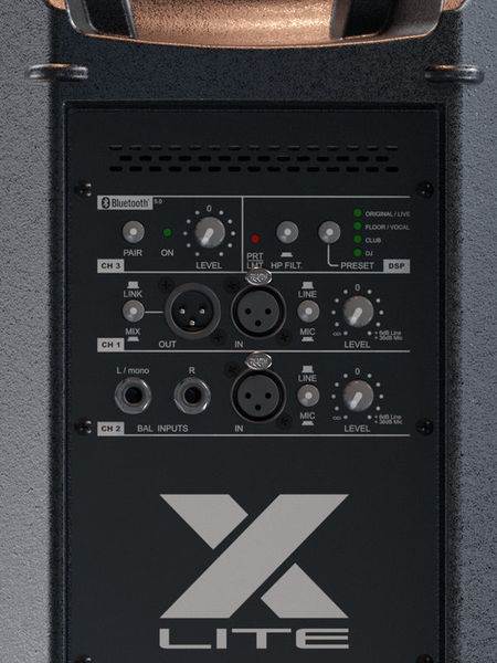 FBT X-Lite 115A - je dvosistemskiaktivni zvočnik, 15" LF zvočnik, 1" HF zvočnik, moč: 1200 W razreda D (LF) in 300 W razreda D (HF), signalni procesor DSP s 4 prednastavitvami, Bluetooth 5.0 za seznanjanje dveh zvočnikov za hkratno predvajanje glasbe in nadzor glasnosti na dveh zvočnikih, 3-kanalni mešalnik, kanal 1 in 2: 2x XLR Mic/Line vhodi, 2x 6,3 mm vhodi Mic/Line (uravnoteženi), 1x XLR Mic/Line Link out moški, kanal 3: Bluetooth 5.0, material ohišja: polipropilenska omarica z brizganjem plina, zasnovana za odpravo neželene resonance, M10 sidrne točke, 35 mm vtičnica za stojalo, 30° in 45° profil monitorja, disperzija (nominalna): 90 ° x 60° (V x V), frekvenčno območje: 42 Hz - 20 kHz (-6 dB), maks. SPL: 130 dB, mere (Š x V x G): 433 x 707 x 400 mm, teža: 19,3 kg, barva: črna