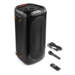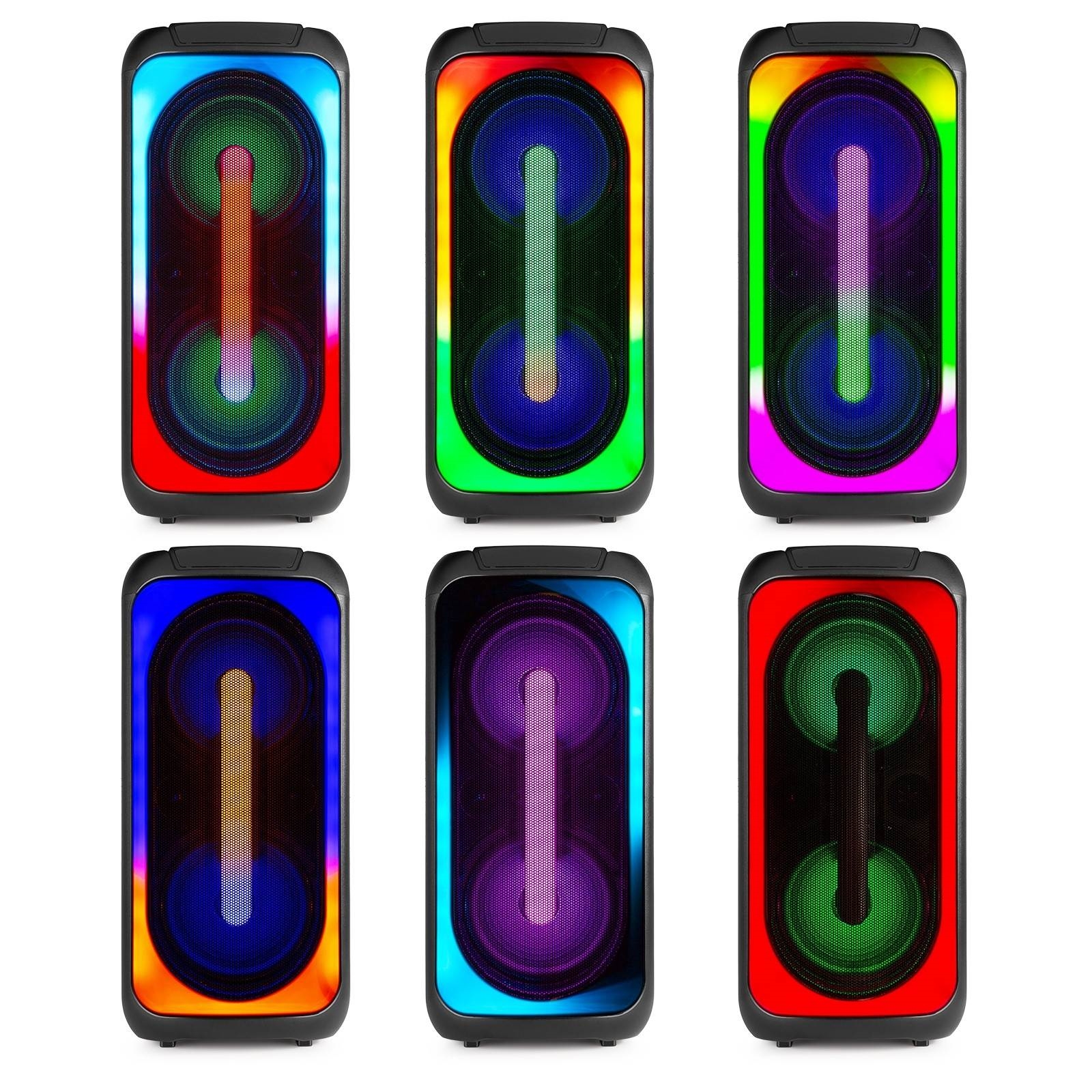 Povečajte zabavo! Dvignite svojo zabavo na višjo raven z brezžičnim zvočnikom BoomBox, ki ima spektakularen svetlobni šov, sinhroniziran z utripi, po celotni sprednji strani. Zahvaljujoč vgrajeni polnilni bateriji, mikrofonu in številnim možnostm vnosa; USB, kartica micro SD in vgrajeni priključek za mikrofon, lahko preprosto prepevate ob svojih najljubših pesmih. BoomBox Party Speaker, ki je popolnoma prenosljiv s kolesi in ročajem, se lahko uporablja vodoravno ali navpično za dodatno prilagodljivost. Možno je tudi brezžično povezati dva zvočnika BoomBox Party, da ustvarite še močnejši stereo zvok. Idealen za domače razvedrilo, karaoke, šole, seminarje ali številne druge aplikacije.
