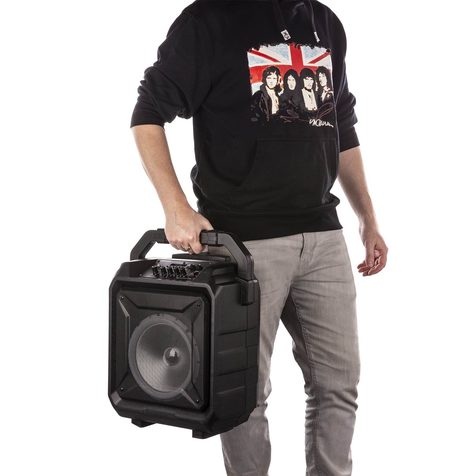 Začnite zabavo s prenosnim zvočnim sistemom MOVE80. Ta robusten zvočni sistem je opremljen z vgrajenim multimedijskim predvajalnikom, vgrajeno baterijo za ponovno polnjenje in ima tudi tehnologijo BT za brezžično pretakanje, kar ima za posledico največjo prilagodljivost. Vgrajen barvit disko LED obroč v zvočniku doda edinstven spektakularen in dih jemajoč svetlobni šov vsaki zabavi. Zaženite ta prenosni zvočni sistem iz električnega omrežja ali ga odnesite kamor koli z vgrajeno baterijo za ponovno polnjenje. Uživajte v glasbi, kamor koli greste!