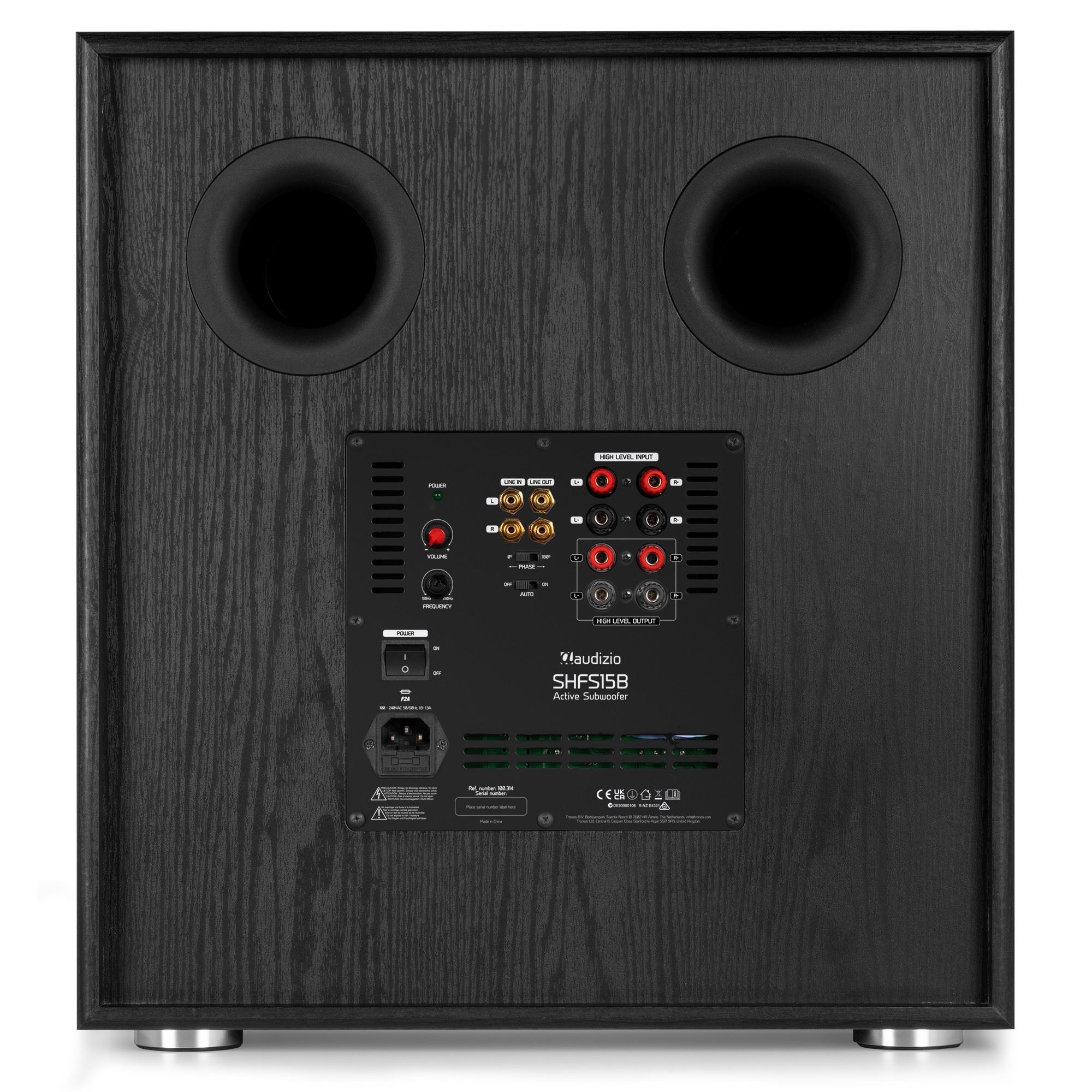 SHFS15B je aktivni nizkotonec, ki vsebuje visokozmogljiv 500-vatni ojačevalnik v kombinaciji s 15-palčnim nizkotoncem z dolgim ??dometom, izdelanim z brizganjem. Frekvenca križanja je nastavljiva med 20 in 200 Hz. Nizkotonec poskrbi za frekvence pod nastavljeno vrednostjo in tako razbremeni druge zvočnike v sistemu. Faza se prilagaja, pri čemer lahko izbirate med 0° ali 180°. Stereo RCA vhod ali standardne priključke za zvočnike je mogoče priključiti na sprejemnik ali ojačevalnik. Črna laminatna površina.
