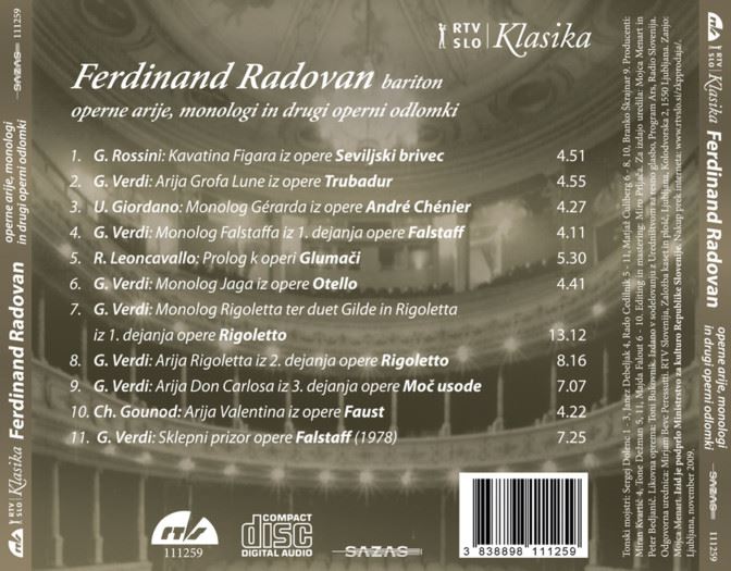 FERDINAND RADOVAN :BARITON OPERNE ARIJE iz kategorije klasika in slovenska narodna sodi med odlične cd.