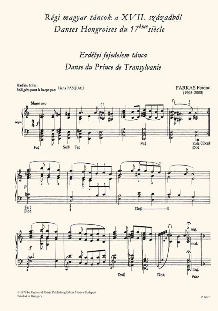 FERENC:DANSES HONGROISES DU 17EME SIECLE iz kategorije skladbe sodi med odlične harfa.