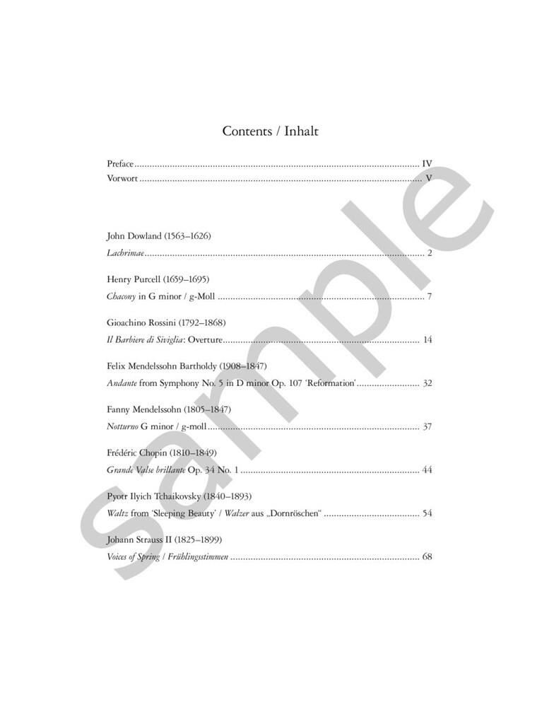 Ta dolgo pričakovana zbirka mednarodno priznanega violinista Simona Fischerja ponuja sijajne dodatke k violinskemu repertoarju. Njegove transkripcije sledijo tradiciji romantičnih priredb iz 19. in 20. stoletja in so namenjene aktualni izvajalski praksi na sodobnih instrumentih. Vključno s transkripcijami priljubljenih melodij in manj znane glasbe ta zbirka zagotavlja virtuozen in lažji repertoar, primeren tako za bis kot za recital.