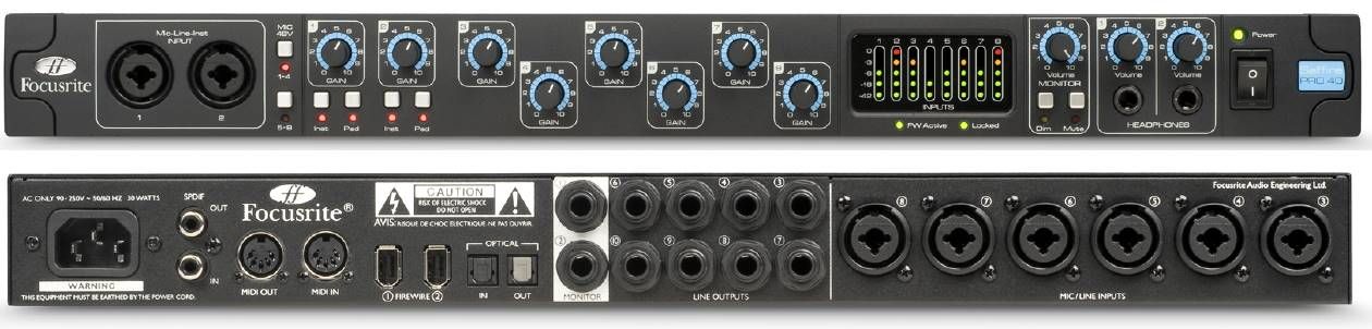 FOCUSRITE SAFFIRE PRO 40 FIREWIRE A.I. iz kategorije zvočne kartice sodi med odlične Studijska oprema.