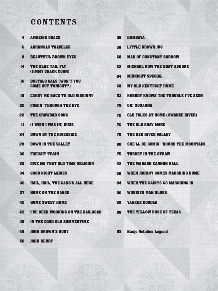 FOLK SONGS FOR BANJO 40 TRADITIONAL AMERICAN FOLK SONGS