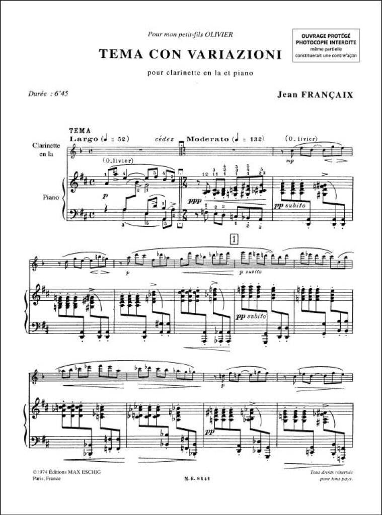 FRANCAIX:TEMA CON VARIAZIONI POUR CLARINETTE & PIANO