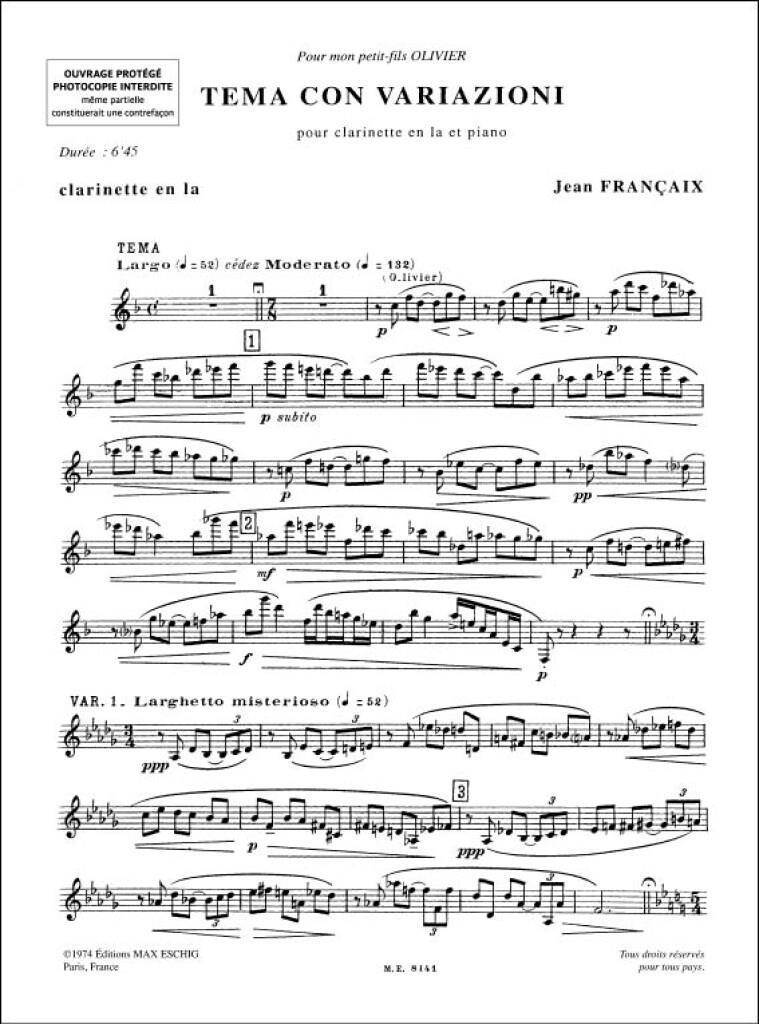 FRANCAIX:TEMA CON VARIAZIONI POUR CLARINETTE & PIANO iz kategorije skladbe sodi med odlične klarinet.