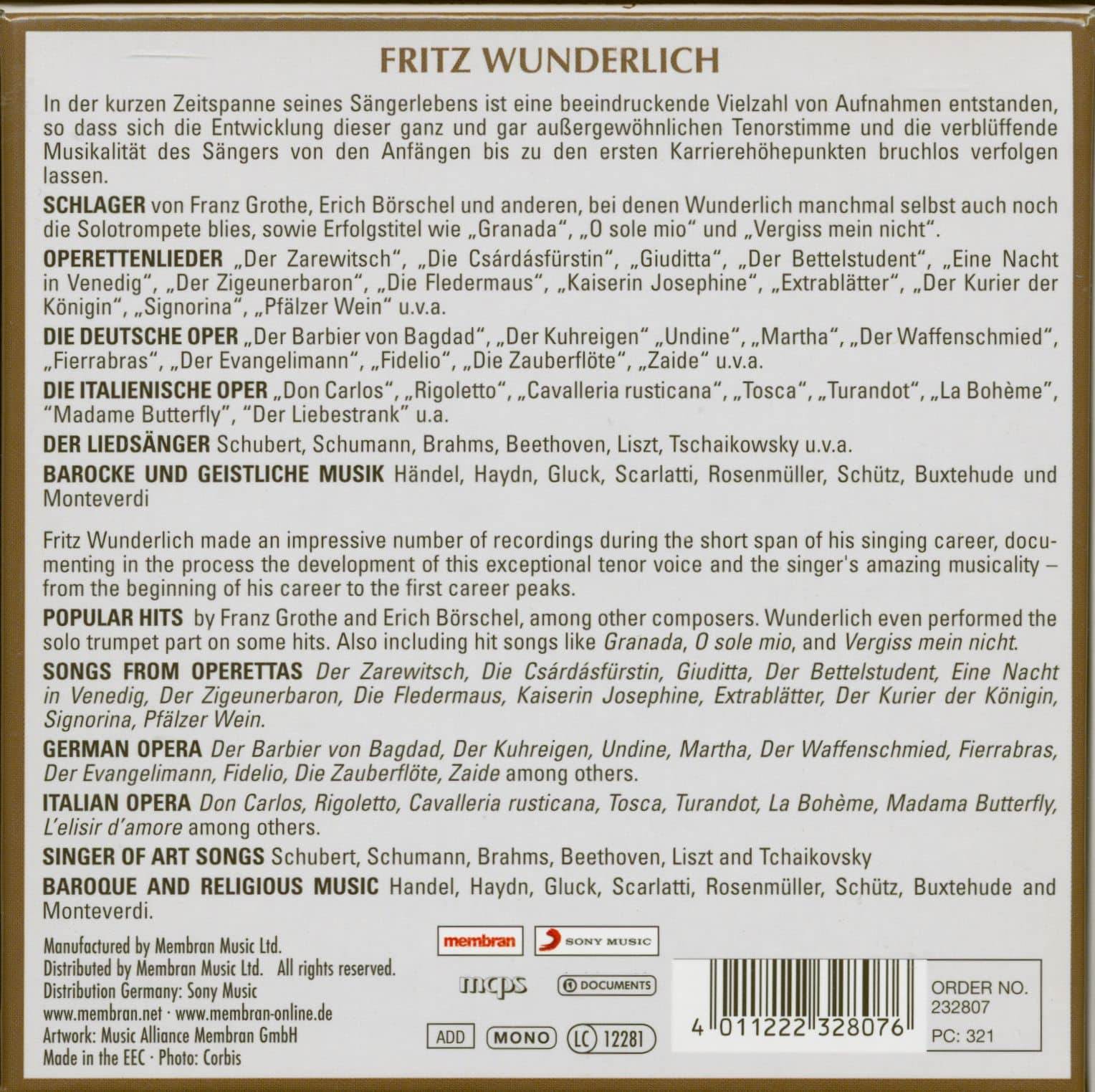 FRITZ WUNDERLICH /EINE STIMME -EINE LEGENDE 10 CD COLLECTION iz kategorije klasika in slovenska narodna sodi med odlične cd.
