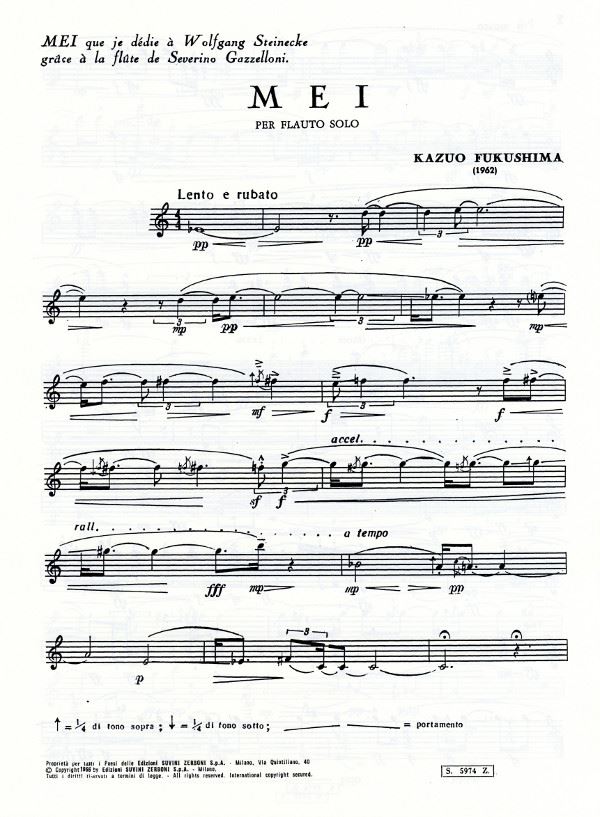 FUKUSHIMA:MEI PER FLAUTO SOLO iz kategorije skladbe sodi med odlične flavta.