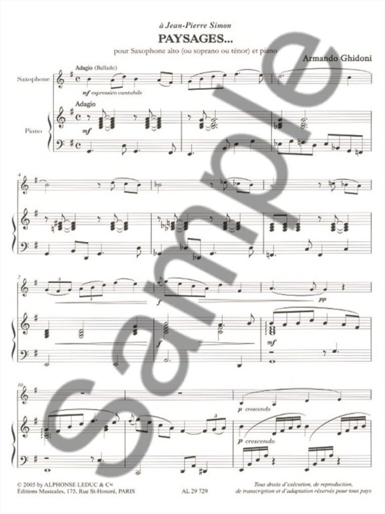 GHIDONI:PAYSAGES FOR SAXOPHONE ALTO AND PIANO iz kategorije skladbe sodi med odlične saksofon.
