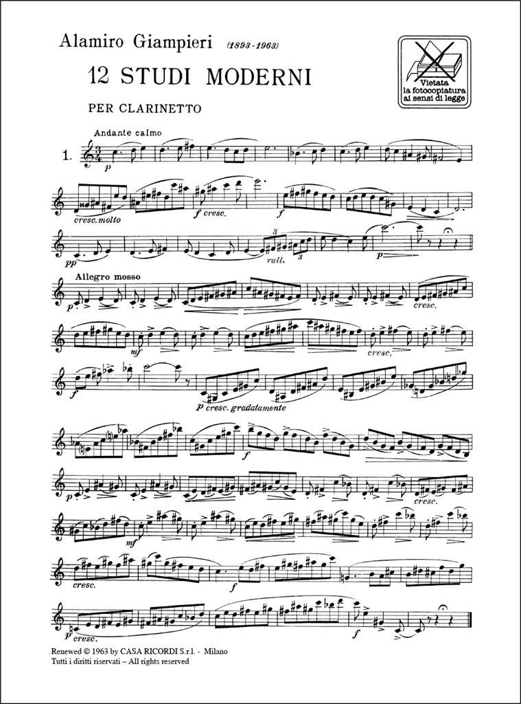 GIAMPIERI:12 STUDI MODERNI PER CLARINETO iz kategorije etude sodi med odlične klarinet.
