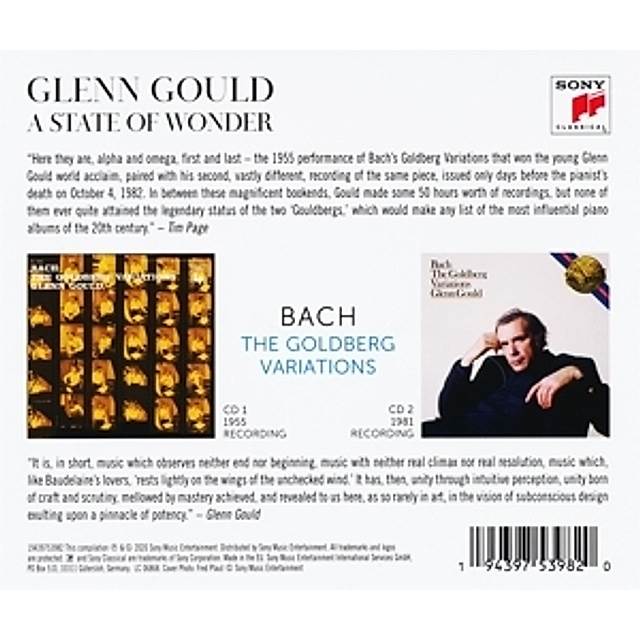 GLENN GOULD A STATE OF WONDER/THE COMPLETE GOLDBERG VARIATIONS 1955 & 1981 2CD