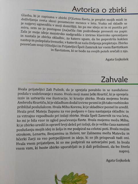 GOJKOŠEK/PUŠNIK:(F)LETNA FLAVTA 12 SKLADBIC ZA FLAVTO IN KLAVIR iz kategorije skladbe sodi med odlične flavta.