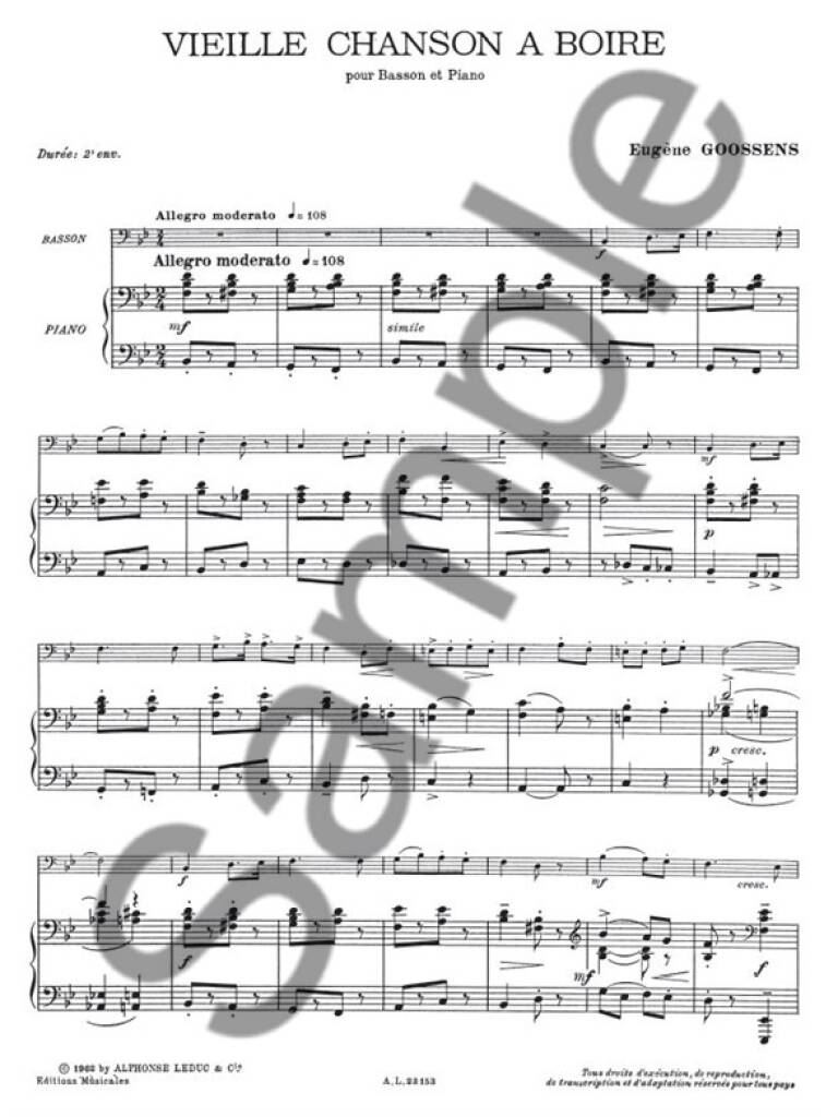 GOOSSENS E.:VIEILLE CHANSON A BOIRE BASSOON ET PIANO