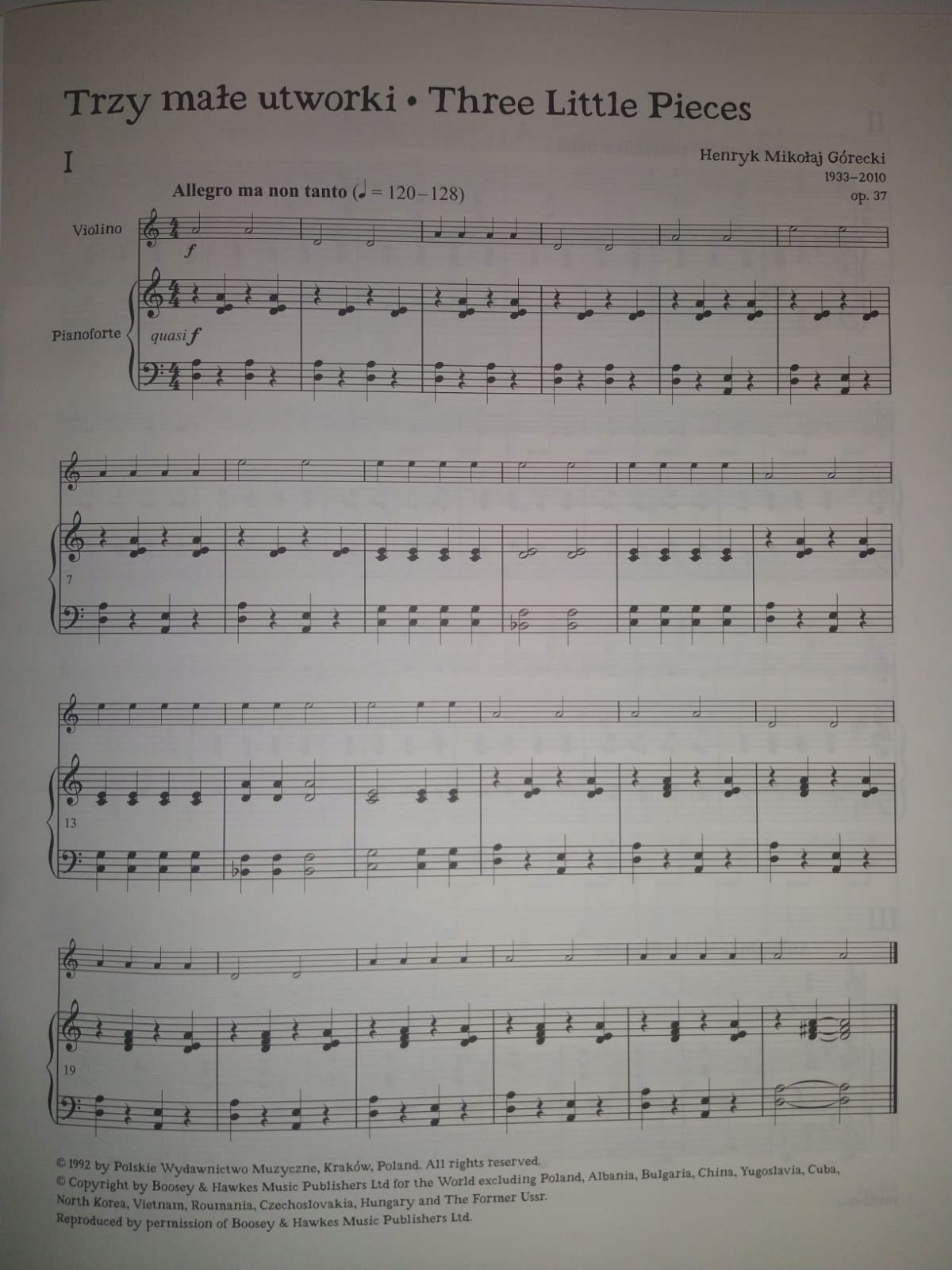 GORECKI:THREE LITTLE PIECES FOR VIOLIN AND PIANO iz kategorije skladbe sodi med odlične violina.