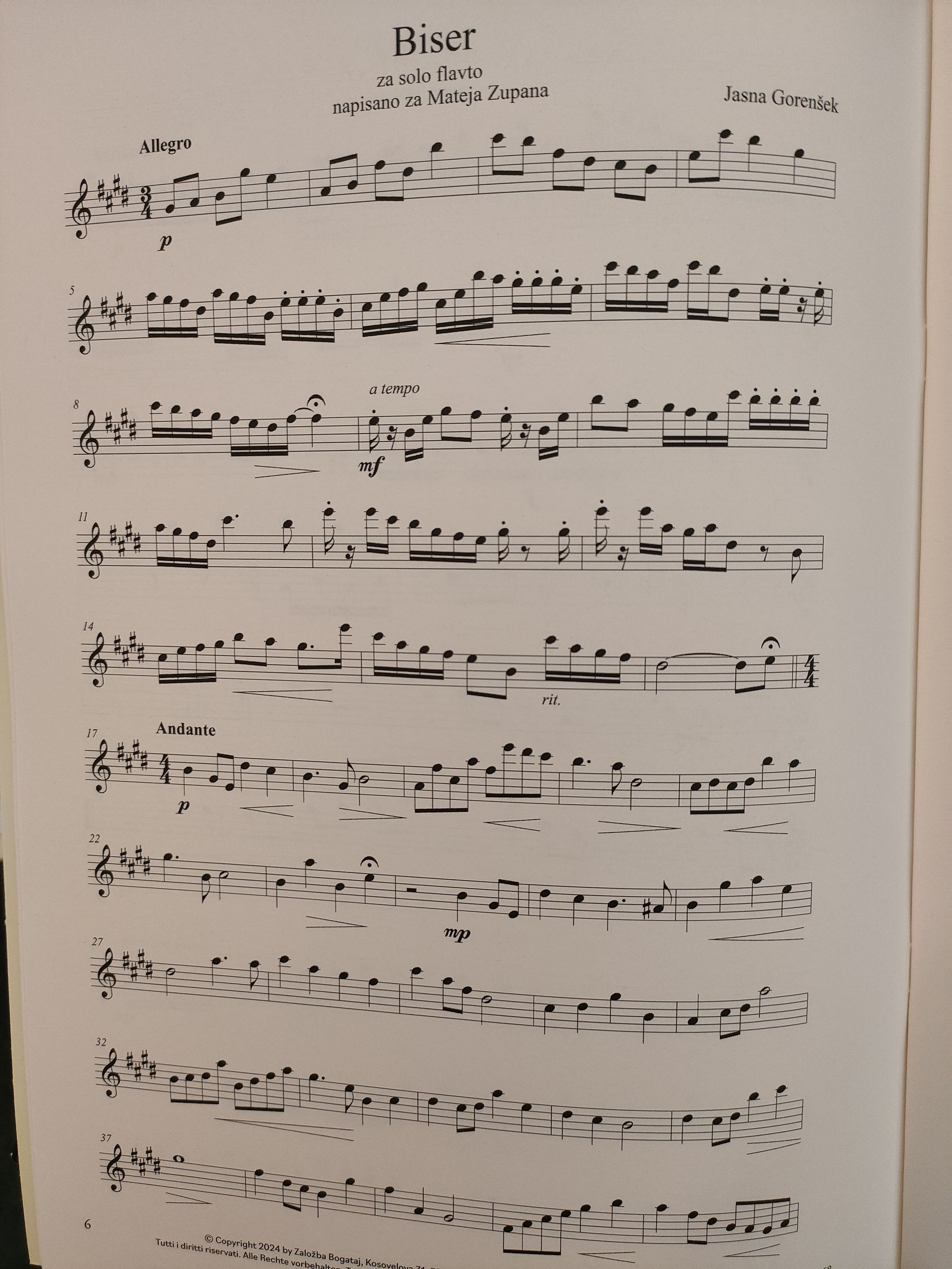 GORENŠEK:SREBRNI BISERI ZA FLAVTO IN KLAVIR iz kategorije skladbe sodi med odlične flavta.