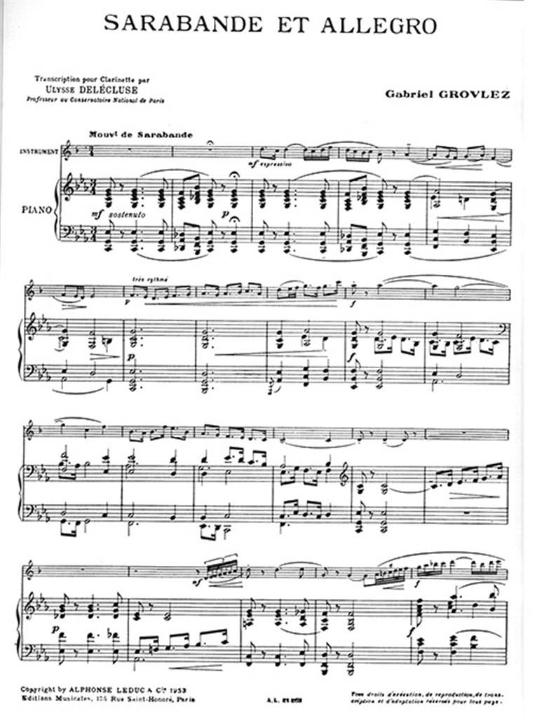 GROVLEZ:SARABANDE ET ALLEGRO CLARINETTE iz kategorije skladbe sodi med odlične klarinet.