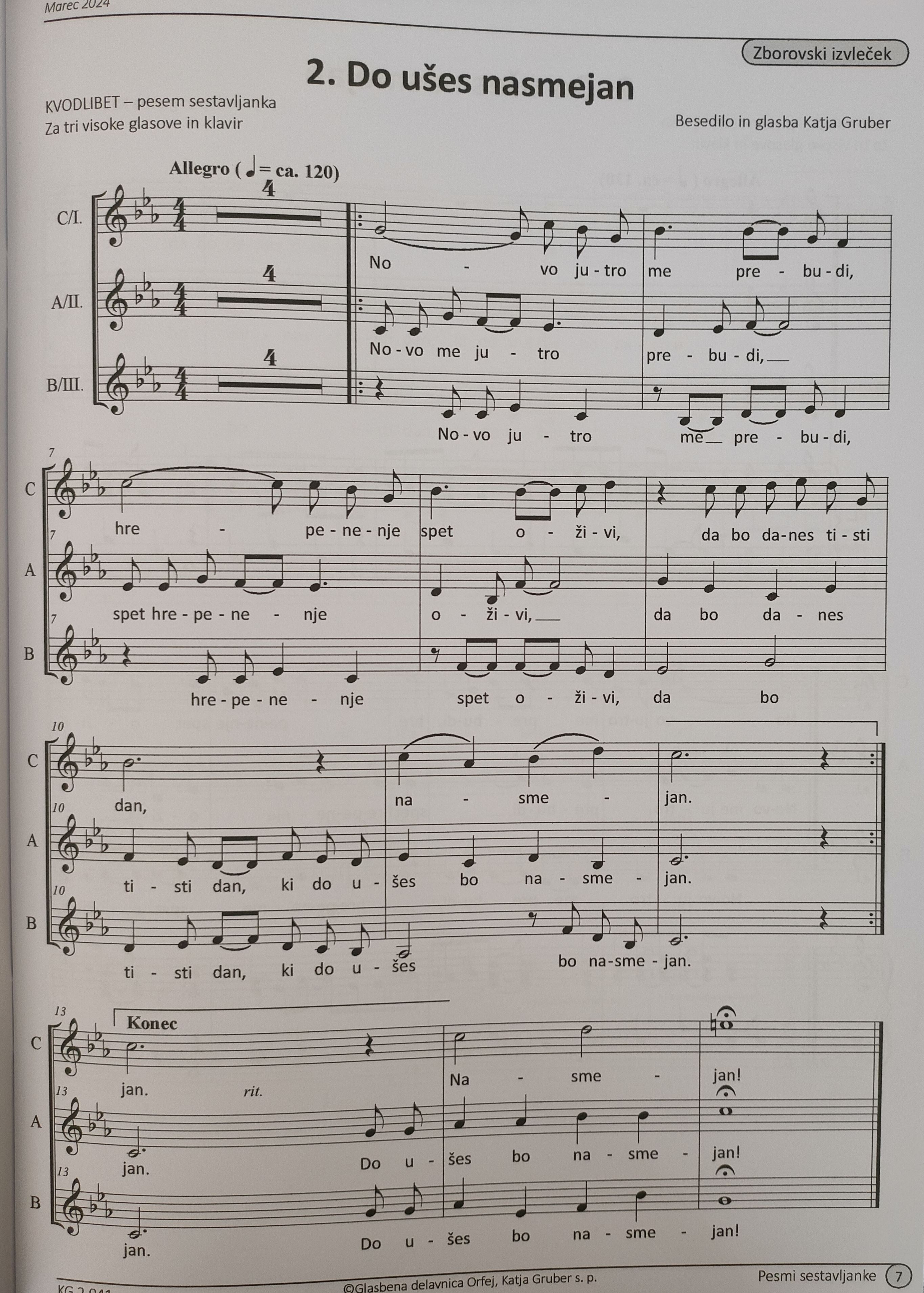 GRUBER:PESMI SESTAVLJANKE ZA OTROŠKE IN MLADINSKE ZBORE iz kategorije zbori sodi med odlične vokal.