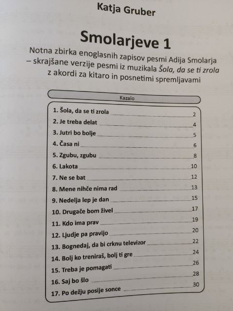 GRUBER:SMOLARJEVE 1 IZBRANE PESMI ADIJA SMOLARJA ZA KITARO