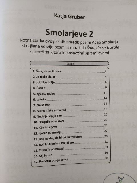 GRUBER:SMOLARJEVE 2 IZBRANE PESMI ZA DVA GLASOVA + AUDIO DOSTOP