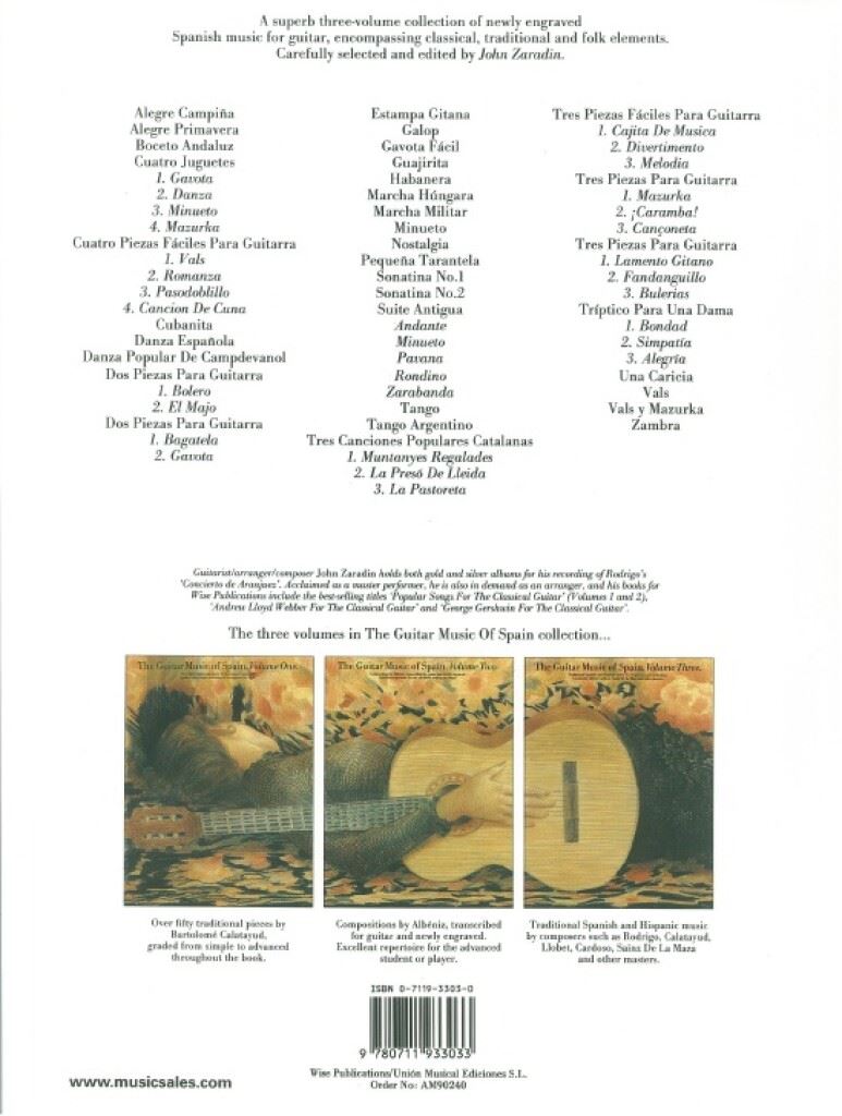 THE GUITAR MUSIC OF SPAIN VOL.1 iz kategorije skladbe sodi med odlične klasična kitara.AM90240 1. Alegre Campina 2. Alegre Primavera 3. Andante 4. Boceto Andaluz 5. Cuatro Juguete ...