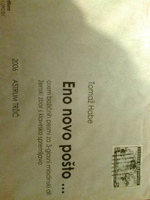 HABE:ENO NOVO POŠTO...8 BOŽIČNIH PESMI ZA 3-GLASNI MLADINSKI ALI ŽENSKI ZBOR S K iz kategorije zbori sodi med odlične vokal.