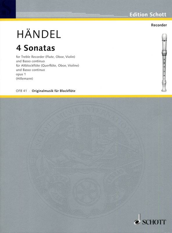 HANDEL:4 SONATAS FOR ALT RECORDER(FLUTE,OBOE,VIOLINE) AND PIANO OP.1