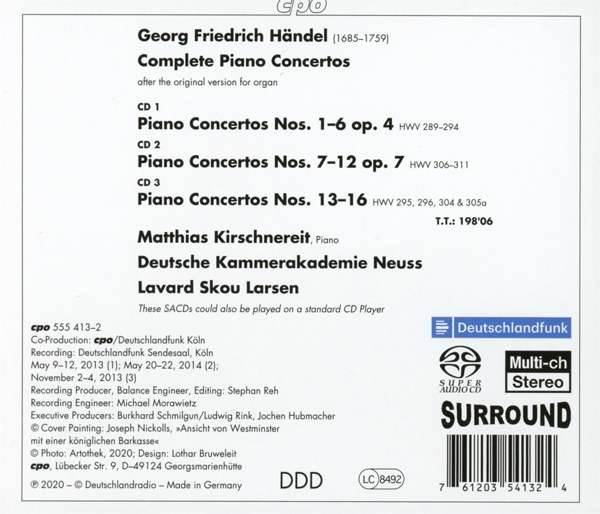 HANDEL:COMPLETE PIANO CONCERTOS NO.1-16/KIRSCHNEREIT 3CD iz kategorije klasika in slovenska narodna sodi med odlične cd.