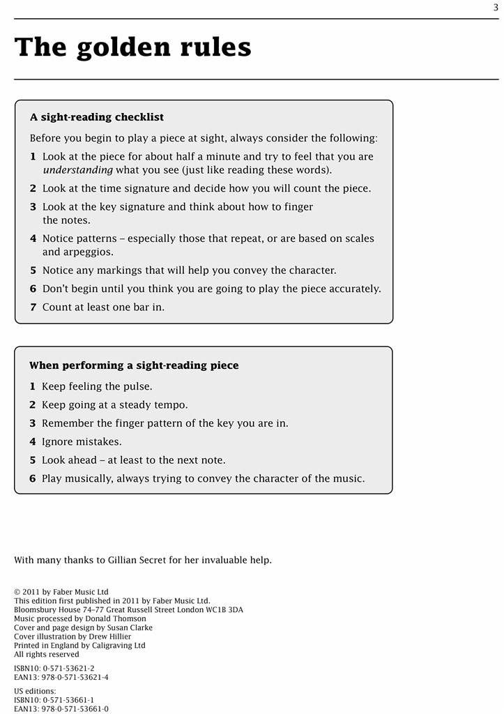 Ta nova izdaja je bila zasnovana, da bi podprla revidirana merila za branje s strani ABRSM iz leta 2012.
