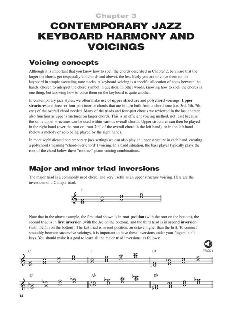 Ta obsežna knjiga s spletnim zvokom vas bo naučila osnovnih veščin, potrebnih za igranje različnih stilov, ki jih sestavlja sodobni jazz klavir. Od kompiliranja do solo nastopa se boste naučili teorije, orodij in tehnik, ki jih uporabljajo profesionalci. Spremljajoči zvok prikazuje večino glasbenih primerov v knjigi. Skladbe s celotnim pasom vsebujejo ritmični odsek na levem kanalu in klavir na desnem kanalu, tako da lahko igrate skupaj z zasedbo! Do zvoka dostopate prek spleta z edinstveno kodo v vsaki knjigi in ga lahko pretakate ali prenesete. Zvočne datoteke vključujejo PLAYBACK+, večnamenski avdio predvajalnik, ki vam omogoča, da upočasnite zvok brez spreminjanja višine tona, nastavitvenih točk, spreminjanja tipk in premikanja v levo ali desno.